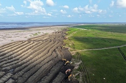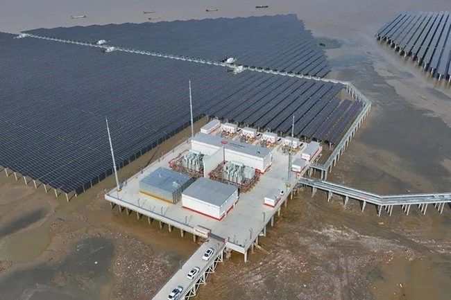 Xây dựng trên các bãi triều đã xói lở ở tỉnh Giang Tô, Trung Quốc, dự án Như Đông của Tập đoàn Đầu tư Năng lượng CHN (Trung Quốc) kết hợp 400MW nguồn điện mặt trời ngoài khơi, hệ thống tích trữ bằng pin quy mô lưới điện và sản xuất hydro xanh với hoạt động phục hồi sinh thái và hoàn toàn tự động.