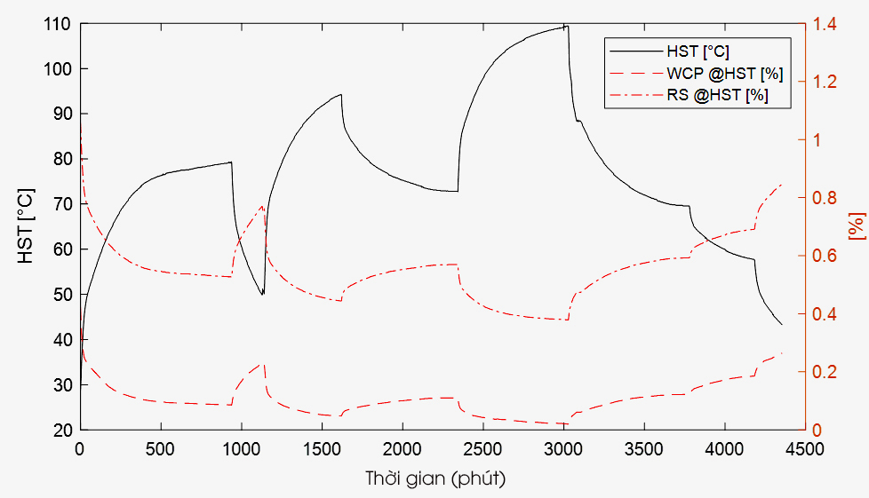 Kết quả của WCP và RS thể hiện ở hình 5. Cần lưu ý rằng các tính toán này dựa trên giả định rằng hàm lượng nước trong máy biến áp vẫn giữ nguyên do có sự lưu thông chất lỏng.