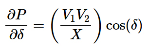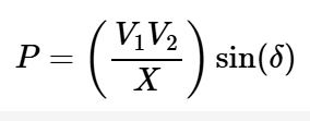 Trong đó, V1 và V2 là điện áp đầu phát và đầu thu, δ là góc công suất giữa chúng, và X = Xđườngdây - XTCSC là điện kháng ròng sau khi bù. Việc giảm X dẫn đến tăng công suất truyền tải với cùng một góc δ, khiến TCSC trở thành một công cụ mạnh mẽ để phân phối lại dòng công suất tác dụng trên các hành lang truyền tải.