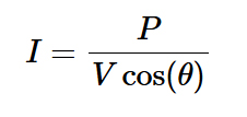 trong đó I là cường độ dòng điện trên đường dây và R là điện trở của dây dẫn. Đối với công suất truyền tải P cho trước trên đường dây có trở kháng, cường độ dòng điện xác định bởi: