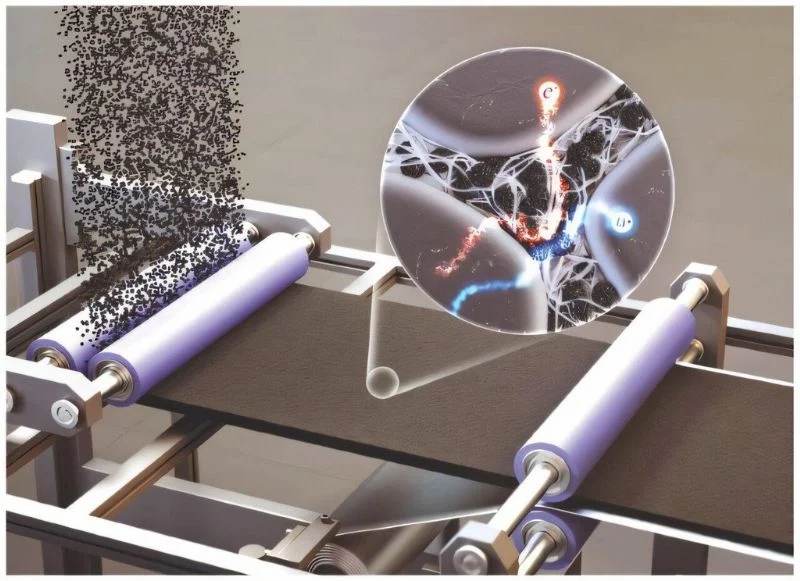 Một nhóm nghiên cứu tại UNIST (Viện Khoa học và Công nghệ Quốc gia Ulsan, Hàn Quốc) đã phát triển một điện cực quy trình khô để giải quyết thách thức trong việc chế tạo các điện cực pin dày hơn mà không bị vón cục trong quá trình bay hơi dung môi. Điện cực từ quy trình khô này dày hơn năm lần so với các mẫu thông thường. Nó thể hiện khối lượng riêng lớp hỗn hợp là 3,65g/cm³ và dung lượng diện tích là 20mAh/cm², tương đương với tăng 14% trong dải EV (xe điện).