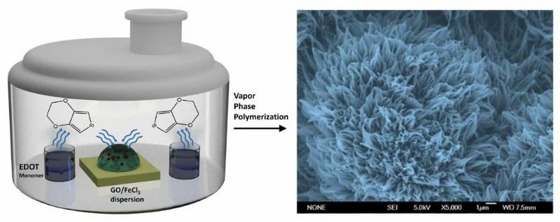 EDOT phản ứng với oxit graphene và sắt clorua để tạo thành sợi nano PEDOT (Ảnh st)