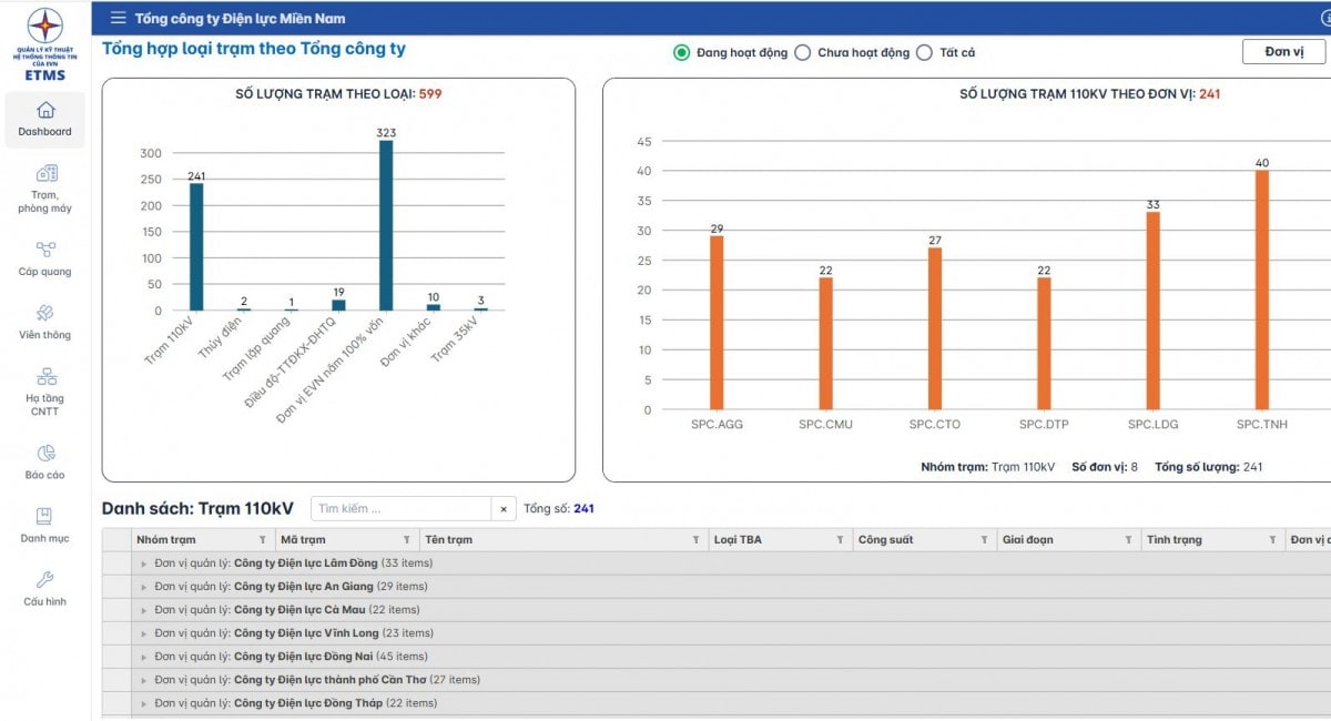 Cùng với đó, Công ty đã đưa vào lắp đặt và ứng dụng CĐS trong việc thu thập, giám sát các thông số vận hành Nhà máy Thủy điện An Khê thông qua giải pháp sử dụng giao thức Modbus RTU cổng vật lý RS485 với mức giao tiếp tại trạm phân phối 220 kV từ tháng 2-2024.
