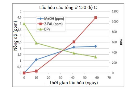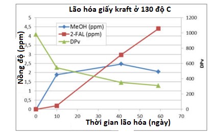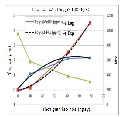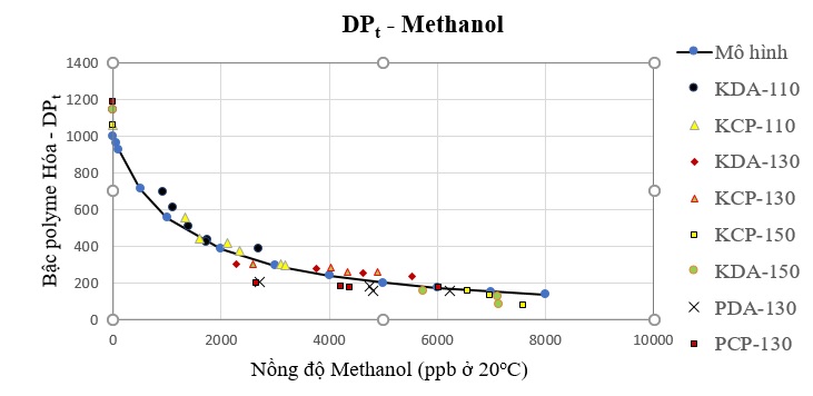 Kết quả phân tích các sản phẩm lão hóa, tính toán thông qua mô hình toán quan hệ giữa DP và MeOH, sau đó khớp với số liệu thực nghiệm và thu được biểu đồ sau: