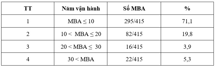 Ghi chú: Các MBA sau thay giấy cách điện được tính thời gian vận hành từ lúc thay giấy