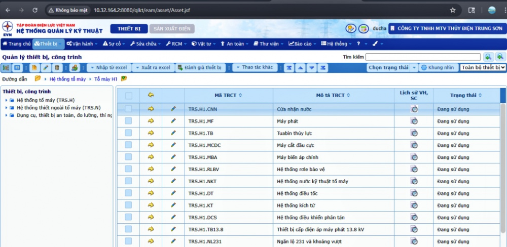 Ứng dụng phần mềm PMIS trong quản lý và vận hành tại Thủy điện Trung Sơn
