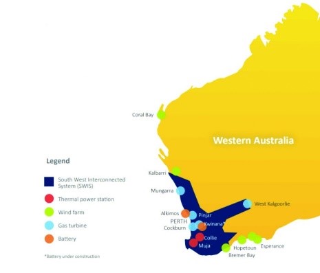 Hệ thống tích hợp Tây Nam (SWIS) bang WA bao gồm Perth nhưng mở rộng về phía bắc, phía nam và phía đông để tiếp nhận một số trung tâm dân số xa xôi. Western Power sở hữu và vận hành cơ sở hạ tầng truyền tải và phân phối trong SWIS. Synergy là nhà sản xuất và bán lẻ điện lớn tại SWIS, phục vụ hơn một triệu hộ sinh hoạt, doanh nghiệp và khách hàng công nghiệp. Western Power và Synergy thuộc sở hữu của chính quyền bang WA. Do khoảng cách quá xa nên lưới điện NEM ở vùng phía đông của Australia không kết nối với WA.
