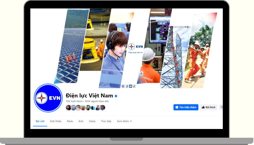 - Trang mạng xã hội https://www.facebook.com/evndienlucvietnam đã đạt hơn 76.000 lượt thích, hơn 103.000 tài khoản theo dõi.