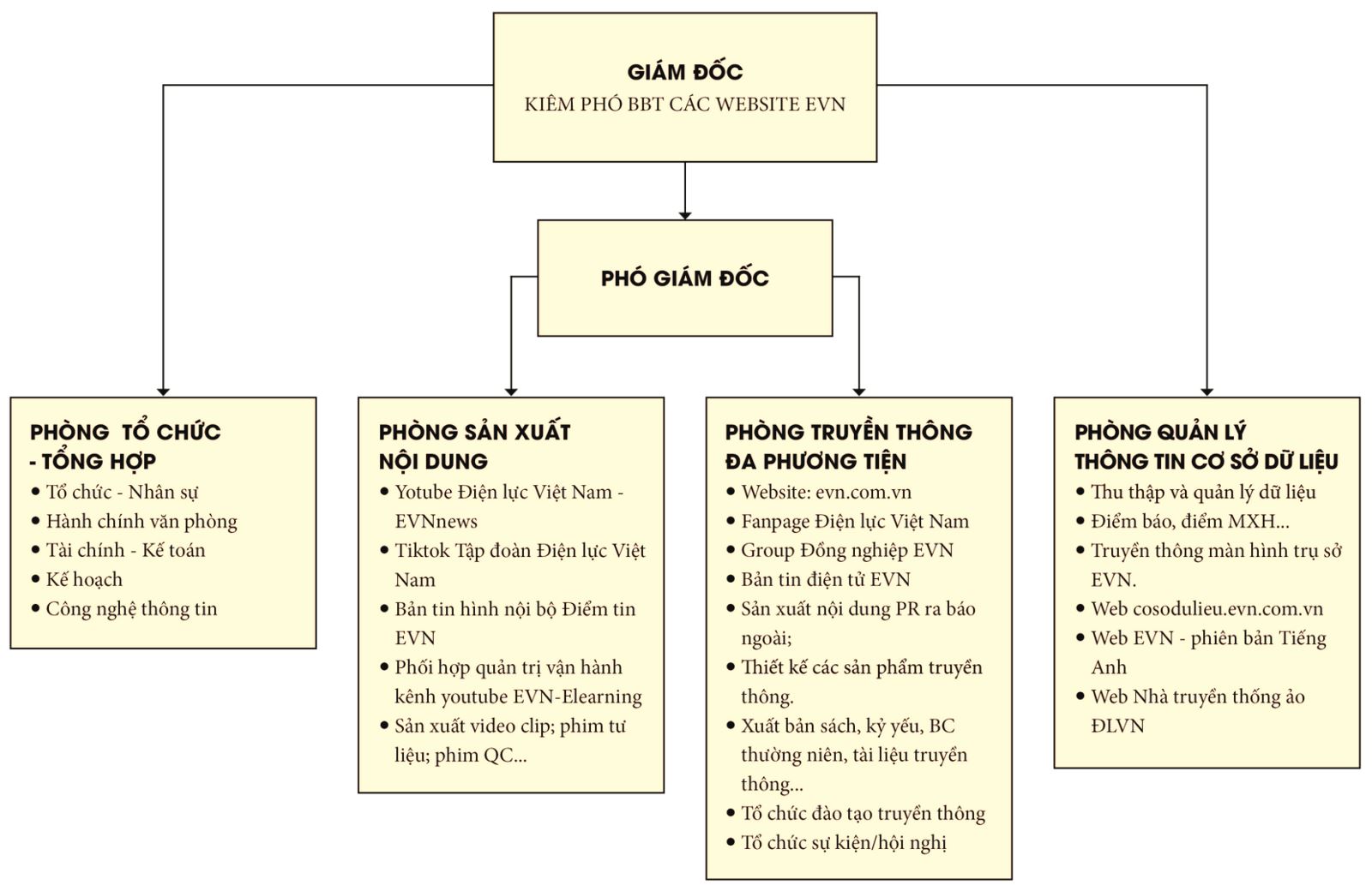 - Tổ chức thực hiện nội dung các trang thông tin điện tử của EVN, bao gồm: https://www.evn.com.vn/; https://en.evn.com.vn/.